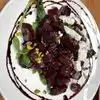 Small Italian Restaurant near our hotel. We did not have a reservation but was seated within a few minutes. The restaurant was busy with mostly diners that were going to the Diana Ross concert nearby. We waited a few minutes before signaling a waiter. He took our drink order. Drinks, water and bread were brought a few minutes later. The waiter finally took our salad and entree order, items from the menu. There were a few specials, but they were never offered. I wish they had, as we were leaving a saw the board outside. The food listed seemed good and something I would have ordered. The salads were OK. I had the (roasted) beet salad with goat cheese. The beets were canned not roasted as stated on the menu. My husbands Arugula salad was much better. My dish was delicious Pear and Ricotta Fogatinni on a cream truffle sauce. My husband had the spaghetti with sausage he said it was good too. We shared a Tiramisu, it was OK. No mascarpone cheese, mostly whipped cream. The food was good. I’ve had better Italian in NYC. The service was not good. It seemed like they can’t handle being busy. It was pricy for the food quality and service.