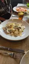 Long wait, we ordered a pizza with sausages and eggplant bruschettas. The eggplants were cold and for the pizza I have to say that it is not even close to a italian pizza. No comment for the wine we left two full glasses on the table.