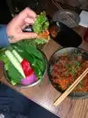 I wasn’t impressed with this place. The good: friendly wait staff, helpful in navigating the menu, although we did find ourselves without water at some point. The food was just meh though, and the portions were small. The hot bowl was tiny, and overall the least tasty hot bowl I’ve ever had. The glass noodle dish was ok, but it lacked flavor. For a dish of this type it was also a very small portion. The chili shrimp was a bit soggy, and the flavor was off. I did like the crispy race cake on skewers. It’s chewy with a nice crisp. Not everyone likes that texture but I do. I didn’t care for the sausage on the skewer, I thought it would be more interesting, but it tasted like a regular mini hot dog. The tuna tartare dish (I forgot the exact name on the menu) was the best one. It tasted fresh and went well with the crackers. Even that I’ve had much better elsewhere. No dish here was horrible, but nothing said wow, I must have this again. I really wanted to love this place, but with so many great options in the area, it just doesn’t measure up.