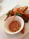 This was our last dinner before leaving for home, and I was certainly looking forward to it based on the reviews. The evening started out with prompt and attentive service. We ordered our favorite appetizer, Spicy Fish Cakes. For our main course, my wife selected the Grilled Sea Bass Fillet. I had the Thai Pineapple Fried Rice, substituting chicken for the prawns. The appetizer was delicious and had me in full anticipation for the main course. Wow, what a let down. While my wife's dish was very nice, mine was very poor. The chicken had no seasoning and had no taste. I actually had to use my wife's green curry sauce to make the chicken palatable. Very disappointed, especially as I had barely eaten all day, anticipating gorging on quality Thai food. As it turned it out, it was just sustenance as I was starving and I have a strict policy about returning food at a restaurant. At the end of the day I could not give a lower rating as my wife's dish was very nice, as were the Spicy Thai Fish Cakes.