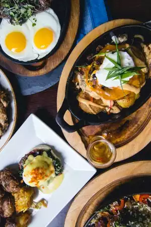 Had some kind of skillet hash...very good! Quirky little bar with good food and specialty cocktails.