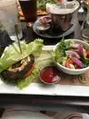 When we arrived, we had to wait 5 minutes before anyone greeted us. Outside seating was crowded but inside seating had plenty of seats. Most of the people were sitting at the bar. The service was so so. I ordered what I thought was a brisket burger which was highly touted on their menu but it really tasted like just another hamburger. They forgot the onions which I think were caramelized but I am not sure but it was no big deal.The best part of the meal was the appetizer. They normally do not offer this appetizer until 3 or 4pm but we requested and it was the Pork Bau buns. Spicy but very good. This restaurant is a bit pricey, they even charge for sauce. I would probably go back but it would be during their happy hour when the prices are a lot lower.