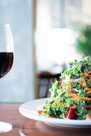My daughter and I had a pleasant time talking, eating and drinking. We were able to talk without feeling it was too loud. The food was good as well as healthy. We had Large satisfying salads. Mine had salmon that was a little dry, but tasty. We shared a nice bottle of wine. The staff was quite friendly.
