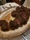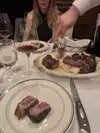 A dark place that has two floors, there are many waiters running from one side to the other. Great meat, we took a pothouse steak (minimum 2 people) and it was cooked very well, it cut like butter and great flavor. As a side dish we took the potatoes with blue cheese (like gorgonzola), also good this. Wine a Pinot Noir from Oregon (deserves, $99). Total bill $296. Ribs, but great meat. By a Milanese milanist