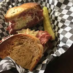Jewish deli in Austin. It is at the end of a strip mall. This is a cozy place with tables inside and out. You walk in and get in line to order, grab a menu at the entrance. I took my Dad because he is from NY and wanted to try. Okay, it is not stacks of meat like in NY, but the Reuben is delicious, perfect temperature throughout and crunch on the bread. The Clevelander was good too, but I prefer the Reuben. The Clevelander had coleslaw in the sandwich. I personally don't like the hot meat with cold coleslaw, but still delicious and perfect crunch on bread. I ordered fries, but not sure why. The sandwiches are big enough. The fries had some inconsistent bits in it, but I enjoyed them. The tables fill up fast! The seating is tight, but that is NY deli style. Everyone that works here is very friendly and helpful. The desserts looks delicious, but I was good. They even have black and white cookies!