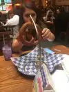 We arrived in Manhattan a little later than anticipated and decided to head down the street to the Bierhaus. Didn't have reservations, and were fortunate to be able to be seated after a short wait. Most of the tables are group style. We weren't brave enough to order the 2-liter beer boot, but there were other smaller sizes of their beer, which was really good. The pretzel for starters was exceptional. Bratwurst and schnitzel were good. There was a band that night (rock covers). They were good, but it was extremely loud. Just talking across the table meant shouting. Still, it looked like everyone there was having a good time, and we did, as well.