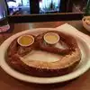 Food was typical German style, with German style beer (not very cold as my wife & I like it. I had a Reuben, she had bratwurst. Better than average food, really enjoyed the beer. Got a soft pretzel until our meal was ready.