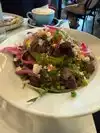 The food is good and well-presented. The service was a bit slow, but the staff was friendly. Overall, a solid spot for a tasty meal in a relaxed atmosphere.