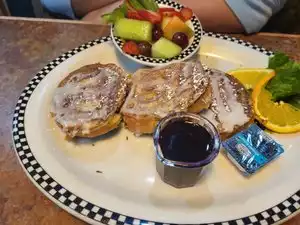 My Mother-in-Law wanted to try this diner, and it was far better than the average diner; it really was elevated diner, like Silver Diner aims for, but Black Bear really achieved. My MIL had the Parmesan burger, which she really enjoyed, and the fires were quite good. I had the dinner meatloaf-- it was a trifle bland but the many tableside condiments fixed that up, and the side salad was well-done with good dressing. My wife got the Tri-tip Dip, and she said it was one of the better French dips she's had. In all, a late lunch for three was only $43, and Julian was a great server. Portions run towards big, as explained in the menu. Really worth going to.