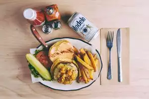 Good food, nice selection of beers and a very cool vibe! I had the felafel burger salad which was massive, but delicious! Partner had the blue cheese & pepper sauce burger with chips, both were excellent. I had the 5 boroughs juicy session IPA which was super fruity and was served ice cold.