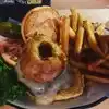 Great food! We went downstairs and ate. Food was fast and prompt prices were reasonable. With a GF bun, burger, and fries $18.00. Tremendous amount of fries and the burger tasted great. I asked for no cheese on my burger. It was perfect. Definitely would recommend.
