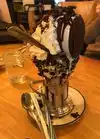 After a long walk from 42nd st to battery park in 92 degree heat, we were looking out for somewhere cool but off the beaten track. We found the Black Tap and well, it was off the beaten track but busy. We stepped inside and were taken downstairs for a table of 4. The table had a wine bottle full of water and 4 glass jugs. We were served quickly and the food is cooked in sight. The food was excellent and the array of craft beers was exceptional. The staff were very friendly and very informative however, all these good points were not the best thing about this little gold nugget. My son and I decided to try the shakes and wow!! The picture is of our shakes. My sons had a couple of chocolate brownies in and the glass was dipped with a frosting and coated with chocolate chips. Mine had 2 churros and coated with cinnamon Graham but also had an ice cream waffle coated in chocolate on the side of the glass. Reasonably priced but quality food. Must try if you are in the area.
