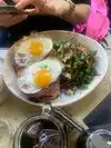 We went for breakfast, and couldn’t have been happier. It’s a small space with great atmosphere. The coffee is rich and brewed perfectly. I had scrambled eggs with shrimp, asparagus, salmon caviar and sour cream. The eggs were creamy and the caviar added a nice salty bit to the asparagus and shrimp. My husband had beef short ribs eggs Benedict. We both were immensely pleased. The portion size was perfect. Highly recommend.