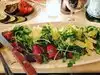 On holiday in NYC, husband and walked in on a whim. It was late afternoon, past lunch so not many customers, however, the manager was immediately friendly and happy to serve us. We had a delicious New England clam chowder served with fresh, crusty baguette. We followed with fresh salads: mine, a red and gold beets with arugula, goat cheese, and balsamic reduction; and a burratta with tomato salad for my husband. Beautiful presentation and perfect portions! Highly recommended!