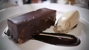 The butter that came with the bread did not taste like butter, it seemed neither salted nor sweet, and seemed to me to have virtually no taste. The soup of the day was potato leak soup ($13), a soup that I usually like elsewhere, but here it did not resemble in any way the previous ones had elsewhere. Its texture was different and the taste was not close to the others and did not have a pleasing flavor. My main course was scallops with corn risotto. They served me three ordinary size sea scallops in a bed of risotto. Before tasting it I thought that was a ripoff for $29. Unfortunately it was served at close to room temperature. I told the waitress and she took it back without an apology or a surprise reaction to that having happened. She said that they would make a new one, but after tasting the "new one," I believe they reheated the risotto and replaced the one scallop that I ate. Most of the atmospheric seating area in the restaurant is on the upstairs level. With the kitchen at this restaurant on the downstairs level, the speed with which the plate gets from the kitchen to the diner is hindered by the stairs that the waiter has to take.