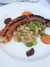 Particularly good meal, everything was a ten. Down four steps to a loud bar scene for the thirty something crowd, then up ten steps to a separated picturesque dining area that was perfect. The menu is limited but the Grilled Octopus appetizer was a stand out, and the entrees of Lamb Shoulder, Trout Almandine, and Duck Confit were something to rave about. Great wait staff, excellent service. The pace of the meal was relaxed and we enjoyed every morsel.