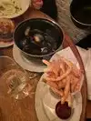 Casual relax atmosphere with a wodden beams ceiling basement Happy hours priced sauvignon blanc: Generous serve, classic citrus flavour with a nice refreshing acidity Moules marinieres or white wine parsley garlic sauce mussels: Nice creamy well rounded sauce and small tasty mussels with a generous serve of good french fries Overall a nice place to chill out and have a nice dose of hood food and drinks