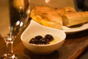 Delicious, fabulous dips, nice ambiance, open to the patio. Superb bread, fresh out of the wood-fired oven, which just kept coming. Attentive pleasant service. A real find in the neighbourhood.