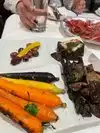 Service was excellent. Burrata appetizer excellent although the portion was small. Chocolate mousse cake/dessert was outrageous. We sat downstairs which had a great ambiance. We didn’t try anything from the vegetable bar located upstairs but everything looked fresh and delicious. So why only four stars? It was the main dish. I had swordfish which is my favorite and it came overdone and chewy. They were very accommodating and made another plate for me which was better but just ok and they took the plate so basically my bf ate first with me watching and then I ate with him watching which I hate. It would have been more comfortable if they just took the piece of fish back and left me to pick on the rest of the plate. Maybe the pastas or other choices were better. Would not try fish again. My bf had a different fish and his was just ok too. Came with capers which he doesn’t like but he pushed them to the side.