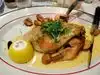 We had the Thanksgiving menu. The aperitif didn't come until prompted. The gorgonzola on the pear turned out to be sheep cheese and the turkey unfortunately tasted rancid. After 60 minutes we were cleared and immediately got the bill. The other people at the neighbouring tables were also dissatisfied. In the end, we were 200 euros off. Wouldn't we do it again.