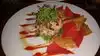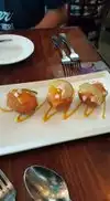 The crowed was not in yet at 6 pm Saturday evening. There is an inside seating and kind of outside covered/ in closed patios eating ,we chose the second one. The Decor is simple and practical, nothing fancy, but odd painting of Skeleton figures on the walls! The Menu was kind of different, and we were not sure what to order, so we asked our waiter Frank to suggest a couple of dishes to us. They did not sound very good, so we chose one appetizer and asked to surprise us with two more, he selected the pulled Pork Dumplings and the Spring Rolls , we selected the Tuna Tacos.the Tacos were kind of salty but tasty if you like salty, the Dumplings were very yummy with a great coleslaw , but it should not have been put in the same dish.the Spring rolls were very tasty too. We also ordered the Southwest Quinoa salad, which was kind of Bla and had very little flavor to it, so we ended up blending the Coleslaw from the Pulled Pork Dumplings dish to the salad which ended up giving it a nice zest the it was missing . There were the two of us, my lover and I and we could not finish them all. I did not have any drinks but she had a Whiskey Sour, but both of us ended up later in the night with heart burns ! Why? I don't know ! The over all taste was good, but the mix...? Or maybe our stomachs are just too sensitive. The bar area filled in a little later and the place was happening . Frank and his helper were very accommodating and served the food very fast. Don't forget to enjoy their Mini Corn bread cup cakes! Which they serve with the bread.