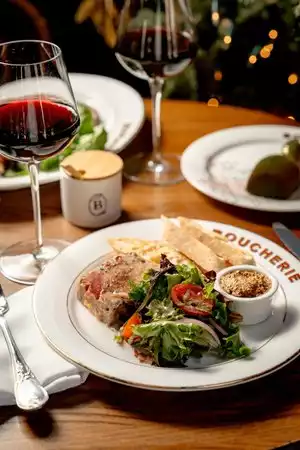 French vibes. Nice wine. Lovely food. Super lit. Oh yeaaaaaaaaaaahhhhhhhh. Boucherie le bosh. Would recccomend. Funky atmosphere. Chilled out sexy kinda vibes/