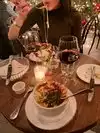 Perfect dinner!!! Went with my sister and we are going to make it a tradition. The best service, food, cozy energy and the flowers were real. Couldn’t dream of anything better!