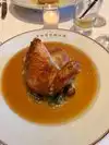 My wife and I shared a soup, which was fine but unremarkable. We next had escargot and duck confit. The escargot had a peculiar lemon aftertaste and the snails were very undersized. For some reason, a little puffed pasty topped each snail. The pastry overwhelmed the small snails. The duck confit was actually terrible. It was not a true confit at all but a highly over salted and over cooked roasted leg of duck. We returned this dish. It was inedible. For the prices they charge, our dining experience was very poor. Our server was top notch - Conroy. Unfortunately, the kitchen was far from top notch.