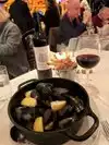I chose spinach and avocado salad $14. Avocado was crunchy and not ripe sent it back. No ripe avocado available. Settled for cucumber cold soup. Meh. Tiny 4 0z portion maybe half a cup $12. Next mussels in white wine sauce for two of us. Mussels SO tiny I couldn't see them literally and half the shells were empty. Sauce- hey, where's the wine guys? Fries OK bit soggy. Husbands pork chop tough as an old boot. Friends husband had six escargot (snails). He said OK. But $16! 5 glasses of wine at $14 each. But OK. Total $268 with tip. Don't go. Just don't. Try Bella Blu same block instead.