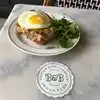 This has been a spot I’ve wanted to try for a while. We stopped in around 10:30 am on a Sunday. It was packed with just a few people waiting for tables. It did not seem the wait would be too long, but we opted to sit at the bar. The bar area is small only 5 seats but since two were open it was perfect. The place is charming. They have a small inside area and a nice patio as well. Very nicely decorated. They offer lots of macchiato, latte, cappuccino style drinks. We had a mocha and a macchiato and both were nice. They have various menus for different times of the day. The brunch menu is small. Perhaps 9 total items? I tried the omelet which that day was spinach and fetta. My wife opted for a chocolate croissant. The omelet was excellent. Too often omelets are a bit overcooked for my taste. This was not the case. I’m not a huge spinach or feta fan but the omelet itself made up for it. They also had some sauteed onions inside which were fantastic. The Chocolate croissant did not disappoint either. The eggs benedict looked excellent! We did not try the eggs benedict but a neighbor at the bar had it so we had a chance to see it. Overall I liked B&B. If we lived in the area I think we’d come more often. It’s a nice brunch/breakfast option.