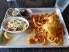 Everything was sooo good! They have some tasty unique menu items. We ordered thai peanut wings, porkbelly sandwich, blackened chicken sandwich, salmon burger, blue cheese fries...all was fanastic and our server Tyler was very attentive and great customer service. With small kids he made sure where to set items and stayed on top of refills. Definitely recommend this place😊