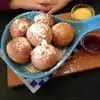 Since I am a vegan, Broder was most gracious to help me with my dietary needs. My friends had some great looking baked eggs. I did splurge on a deep fried pancake balls. They were exquisite. I had the most delicious greens with some great toast. I didn't feel left out when my friends were having eggs, bacon, pancakes, etc. It's a very popular place because people wait outside on Sundays to get a table. Seating is very limited but well worth the wait.