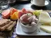 I had the Swedish breakfast platter: rye crisp, salami, gravlax, grapefruit, yogurt & berries, cheese. Very tasty.