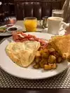 Year 70 atmosphere typically American. Good hearty breakfast just enough to avoid attentive personal lunch. High price but all in all justified,
