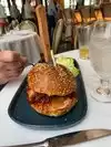 The espresso Martine (esma) is not on the menu but is a classic so they can make. For my taste too much vodka not enough coffee liqueur. The red wine as so often too hot, with hot weather it is often not room temperature. This fruity cheap wine is better served a little cooler. The soup was delicious. The service extremely friendly and the location great with good weather. In winter with the skating rink on the doorstep too. The filet mignon burger was totally good. Good medium baked but also not special. Another big bowl of fries. Had a lovely evening with great food but the drinks could be better for $20 dollars on average.