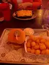 Dark and cozy atmosphere, colorful lights and live music. We walked in on a Sunday afternoon from a chilly walk outside to a warm, lively, friendly setting inside. Service was great from Kylie M (5 stars). The heavens parted and delivered cinnamon rolls for an anytime of day appetizer! My husband, son and I split a 3-meat sampler: pork, brisket and burnt ends. We preferred the two beef options. We had cornbread, texas toast, pimento cheese spread on the tray and for our two sides we chose mac-n-cheese and the sweet potato fluff. Both were memorably delicious. Only "downside" was the music was very loud. We enjoyed the musician and appreciated the tv options for sports.