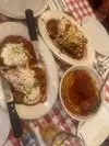 A group of 3 went for lunch. We didn’t know they were huge family portions. We all wanted different things but had to settle on one thing to share since our hotel rooms neither had a fridge or microwave. The pasta was good but it wasn’t special. It would have been nice to get what we each wanted. Wish they had individual sizes. The mozzarella bread was really good. I probably wouldn’t come back because of the sizes. But if you are a big family this would be Great for you.