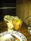 When you and your husband are the only non-Indians in an Indian restaurant, you know you're going to get excellent food, and we did! We ordered a chicken vindaloo and a lamb dish: Gazab Ki Boti. Our server asked us about "how hot" we wanted it, and my husband said, "hot!" Hot, we got - and it was amazing! The garlic naan was HUGE, as were the portions of the food. We couldn't eat it all, and sadly - as we were staying in a hotel - we had no way to take our leftovers with us. I generally give leftovers in that situation to a homeless person, but didn't want to chance the "hot" on an unsuspecting person, so... The menus here are slabs of wood about 18" across. Black print on brown wood, so bring your cheaters and a flashlight. lol Very good value for the money, and dinner for two (two entrees, Basmati rice, naan, one beer) was about $80. Two entrees could easily feed four people, BTW.