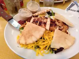 When my colleagues suggested a lunch at Burger Heaven, I was hesitant. I had seen the chain around the city and try to avoid places like this. The name is also not very appealing. However, the restaurant has much more than hamburgers. It is, in fact, a nice diner. Though the prices are a bit high, the portions are huge. I ordered the Asian Salad with grilled chicken, crispy noodles, mesclun greens, almonds, sesame seeds, and peanut dressing. The salad offered a variety of textures and was delicious. The salad was topped with a very large piece of grilled chicken that was also well-marinated. I loved the fact that they offered us pita bread to accompany our salads. Burger Heaven is a tasty diner perfect for a satisfying breakfast, lunch, or dinner.