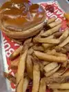 The look of the burger gives you feeling very special very taste but fact after trying tasting burger nothing special it taste like aby frozen regular burger although I can say it's overpriced for that kind type of burger.