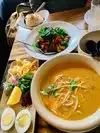 Our intro to Burmese cuisine. Dishes were fresh cooked veggies with your choice of meat, if desired. Flavors were exotic and a little spicy...depending. You must try the Platha and dip. Service was outstanding.