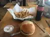 WOW what a great selection of different burgers. Pork, Shrimp,Turkey something for everyone . You can choose from a variety of meats/Shrimp with a variety of sauces/spices and breads. Knowledgeable staff very helpful when you have to make your choices. Seating is limited but moves out quickly so if its full when you get there you will have a seat by the time your fresh cooked burger arrives. A large fry order will easily serve four.