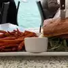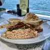 With many hours to spare before heading to airport, I spontaneously came here for a last minute sunshine & lunch destination. $10 ride here from airport. The hostess stand politely offered to check in my luggage while I dined. the hostess seated me at the best seat on the patio for views of the harbor, bridge and boats. I took one of the server’s recommendation and ordered the Fresh catch sandwich. It was layered with aioli, onion, tomato and amazing goodness on a delicious brioche bun. The fries were seasoned and plentiful, but could not eat them all with such a large portion. Excellent experience. Elizabeth my server was attentive and knowledgeable.