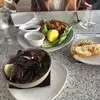 We were staying down the street at the airport Hilton and noticed the advertisement for $7 happy hour bites and cocktails. The patio seating offered great views of downtown and the bay. Our server, Tony, was very professional and friendly. We had the steamed local mussels in a spicy garlic broth. Interestingly we had two bowls and the consistency of the broth was very different between the two. One had had time to thicken into a rich flavorful sauce and was absolutely delicious. The other was a newer broth because it was very thin and hadn’t had time to thicken and develop the flavor. The menu selection and cocktail choices were very appealing. It was a great stop!