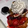 We ordered the Strawberry Pancakes and they were under cooked, in both plates. They had only 2 slices of strawberries and the rest was fake marmalade. For the price and the location, I was expecting more