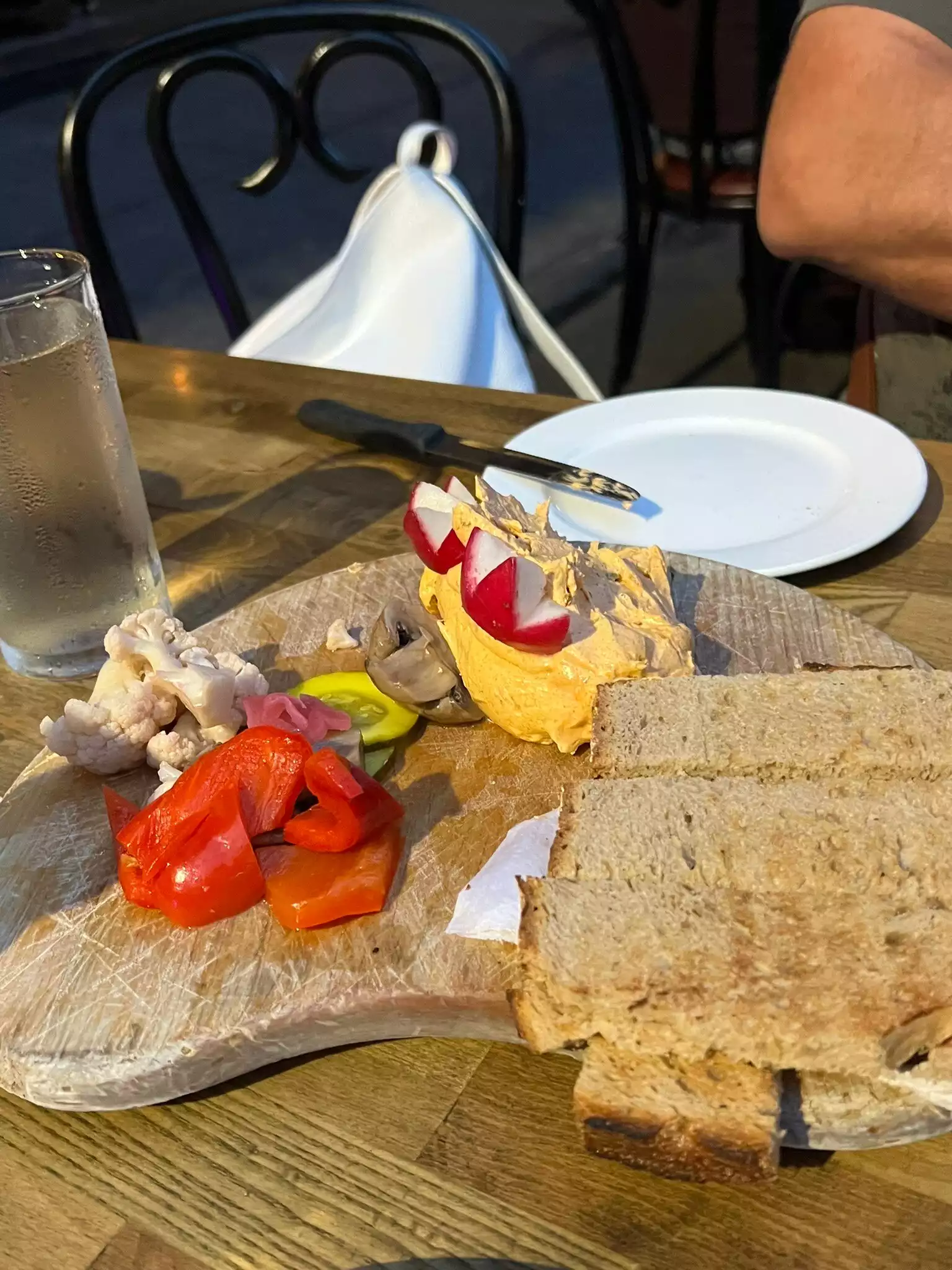 We wanted to sit and have a snack and some drinks, so we popped into this restaurant on a Saturday afternoon while walking around the neighborhood. We had a platter of cured meats and a pretzel. The pretzel was good but nothing unique. The cured meats were very good and flavorful. Again, nothing too amazing, but solid and tasty. It came with a generous amount of toast, which the server also offered to refill, though we had plenty. I enjoyed a cocktail and my husband had two glasses of wine, both lovely rieslings. The service was not overly friendly, but we felt welcome and attended to. The main dishes we saw going to other tables looked tasty and I was wishing we would have time to return on our trip, but we did enjoy what we saw of Katja.