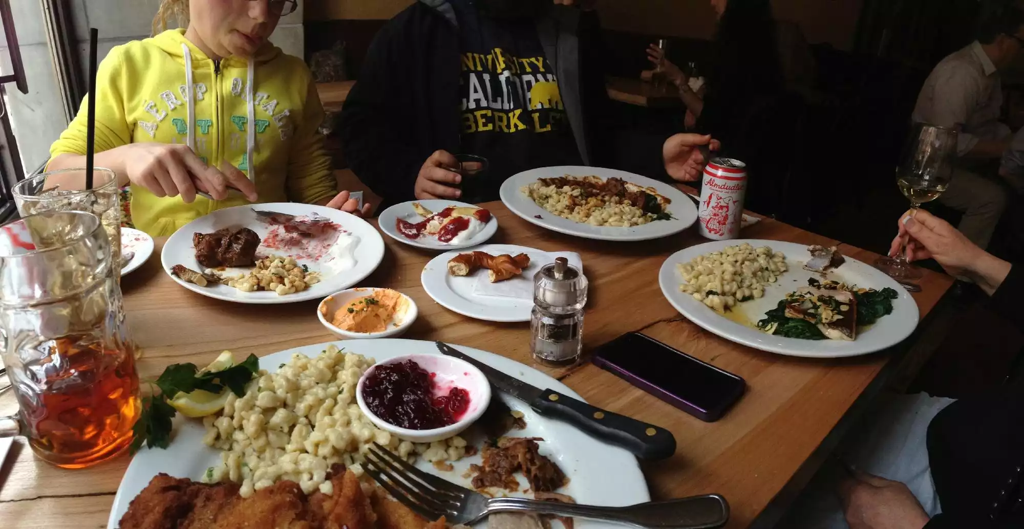 Followed Trip advisor reviews and four of us went for lunch. Austrian food when we asked. We shared the cabbage salad appetizer-dressing was fantastic, server said loganberry was the secret ingredient. Three of us had the beef goulash with spatzel, one had the burger with cheese melted over the caramelized onions. We all thought excellent.