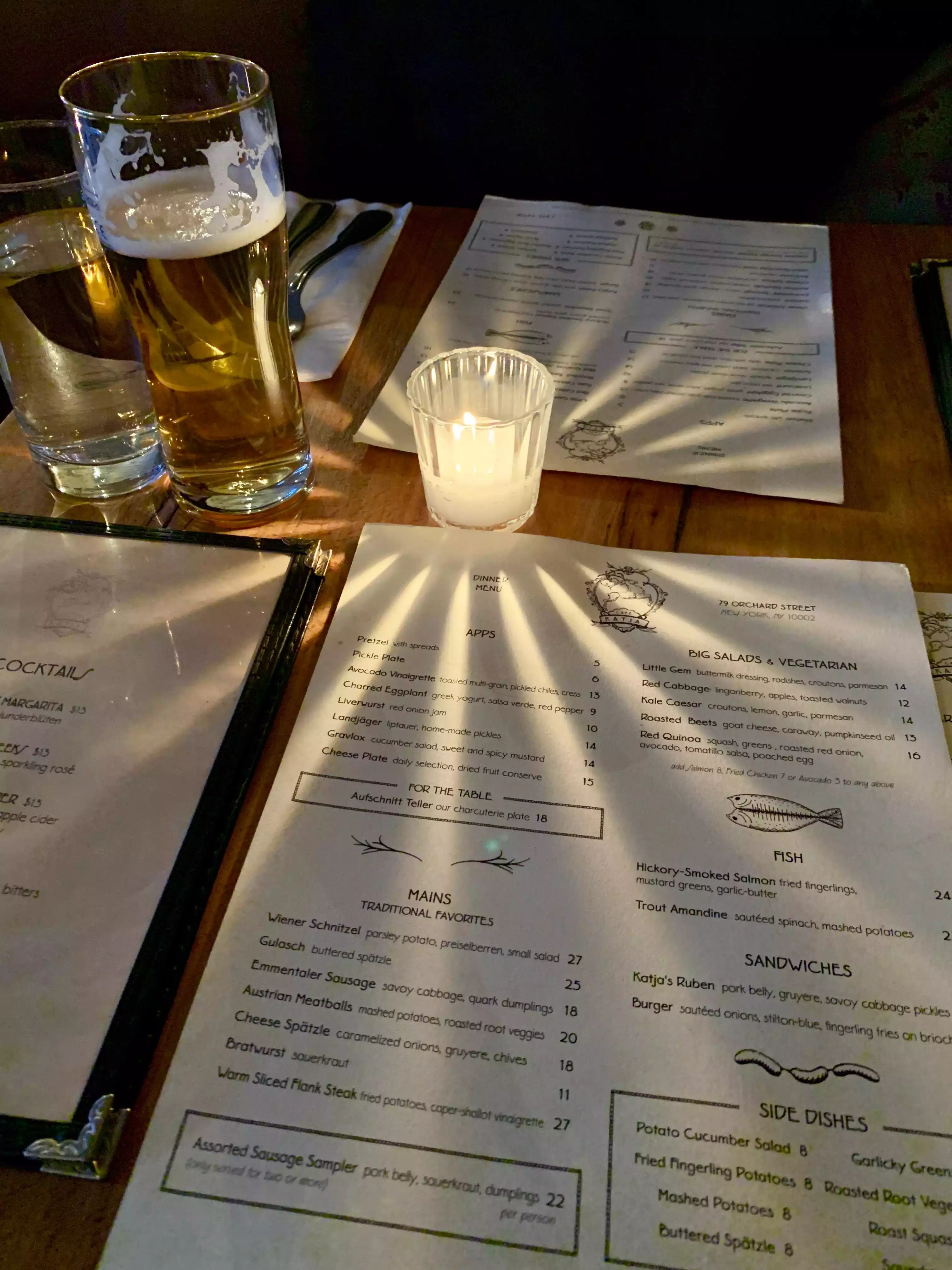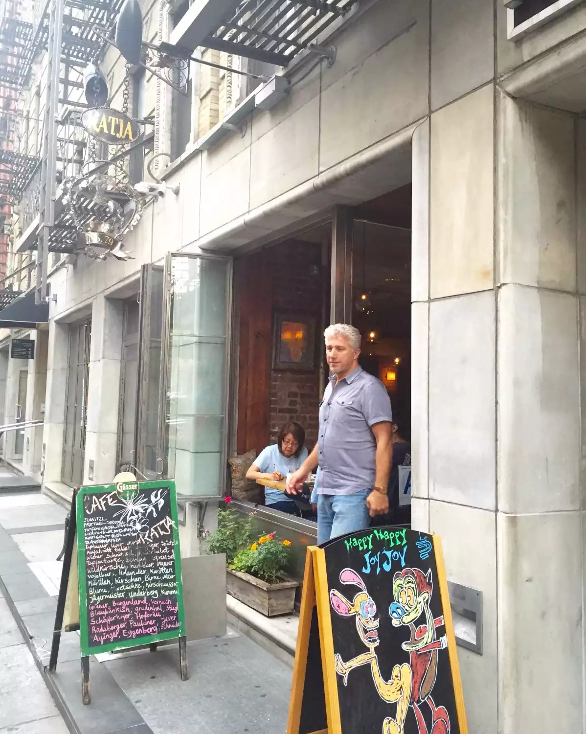 We searched out this restaurant on a recent visit to New York with our grand daughters because one was named Katja. It turned out to be so much more than a photo op of her by a sign. Andrew the co-owner happened to be our first contact and he mesmerized us with his kindness and genuine approach to being the perfect host. He talked with us about the name and helped the girls decide between to Austrian drinks. He then found us a table by the front window where we could watch everyday life pass by in front of us on this narrow city street. Andrew then took time to not only describe the menu but help guide us to what we might prefer to try. He hit each order dead on to each one in our party's taste. This made the tasting experience a huge success. Afterwards he came back and told us to write and he would get Katja a t-shirt when a new shipment arrived. One last courtesy before we left he came out onto the street and posed with us in front of the sign for a picture. Andrew you made a lasting impression on all of us and we will return when we visit NYC again.