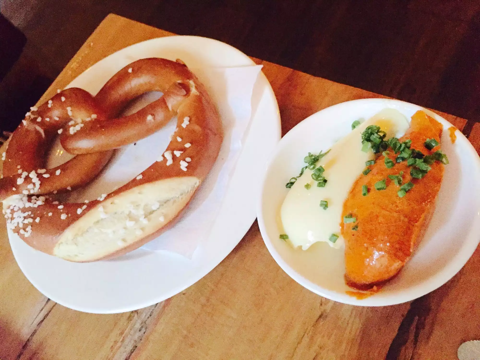 We were touring the city with some international visitors and decided to stop for a break. We had beer and wine and ordered several appetizers including the pretzels. Everything was very good and our visitors (from Germany) were very pleased with the German style food.