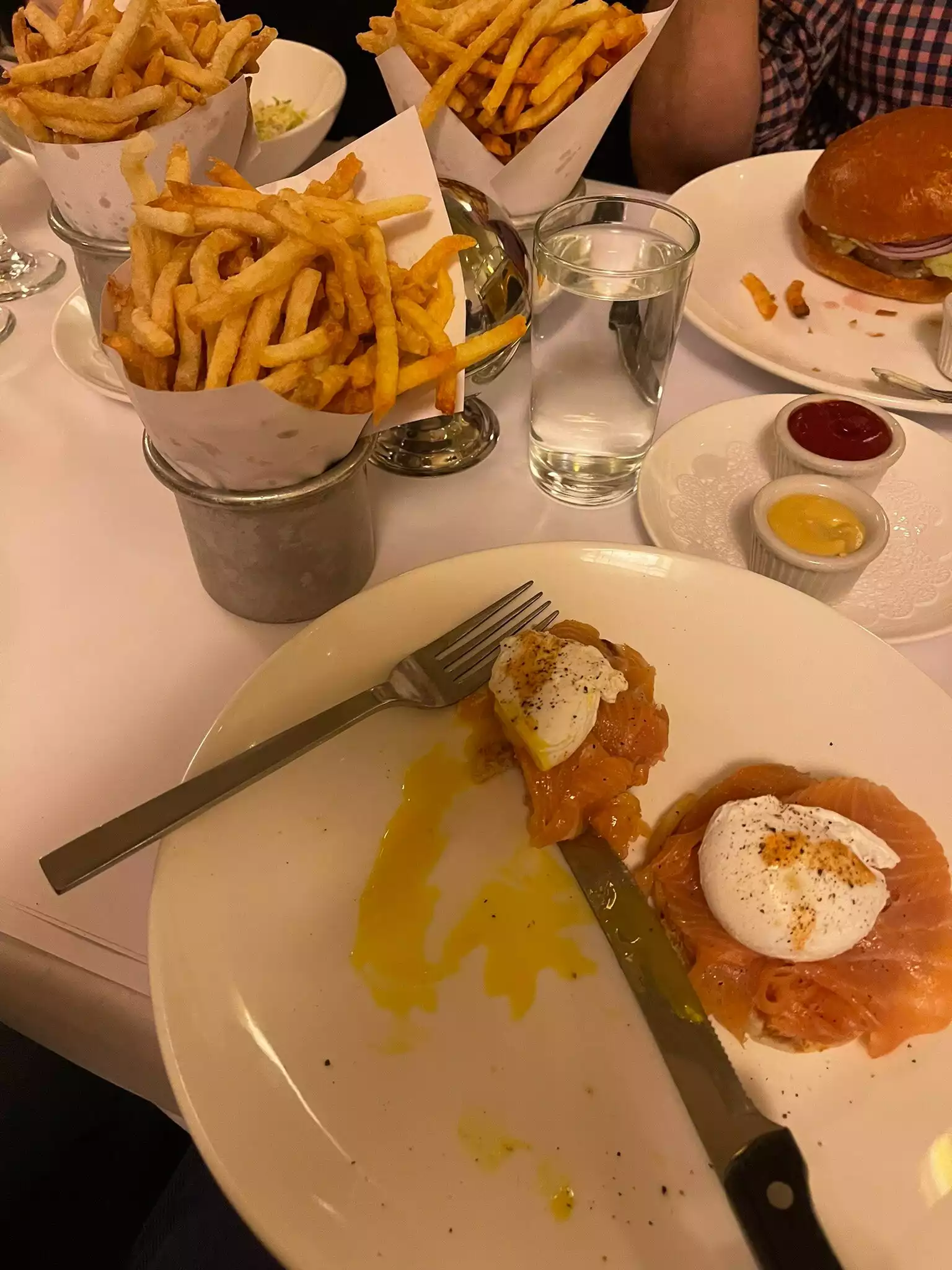 We went for brunch. Had to wait a few minutes as it was packed. I recommend making a reservation. We sat at the bar and the service was great. Food and cocktails are great. Pommes frites are out of this world